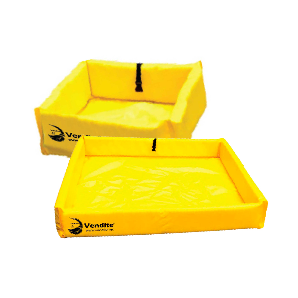 Está diseñada para una respuesta rápida a fugas, goteos y derrames pequeños. Su tamaño compacto y capacidad de plegado la hace fácil de almacenar y transportar. Esta hecha con 22 oz. cloruro de polivinilo.