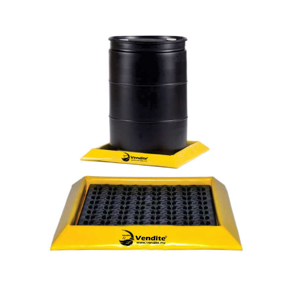 Esta plataforma ha sido diseñada específicamente para el almacenamiento seguro de tambos industriales. Está fabricada con Polietileno de Alta Densidad (HDPE) 100% virgen, material que le confiere una alta resistencia intrínseca a